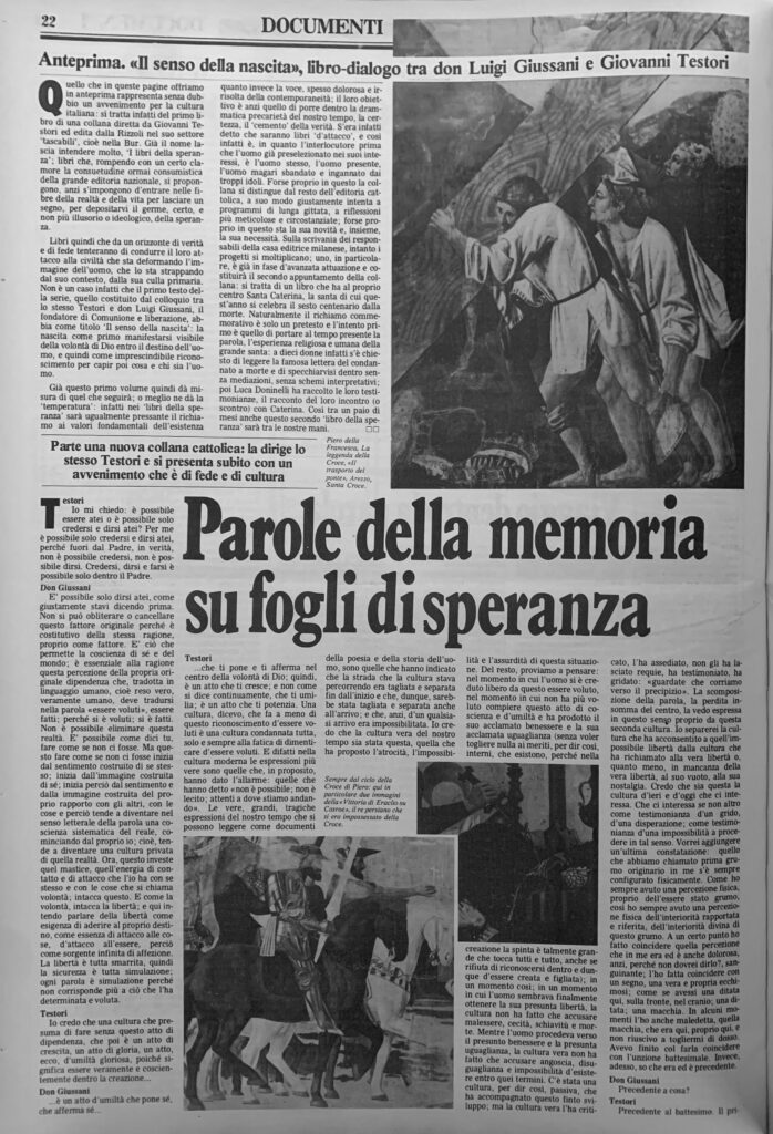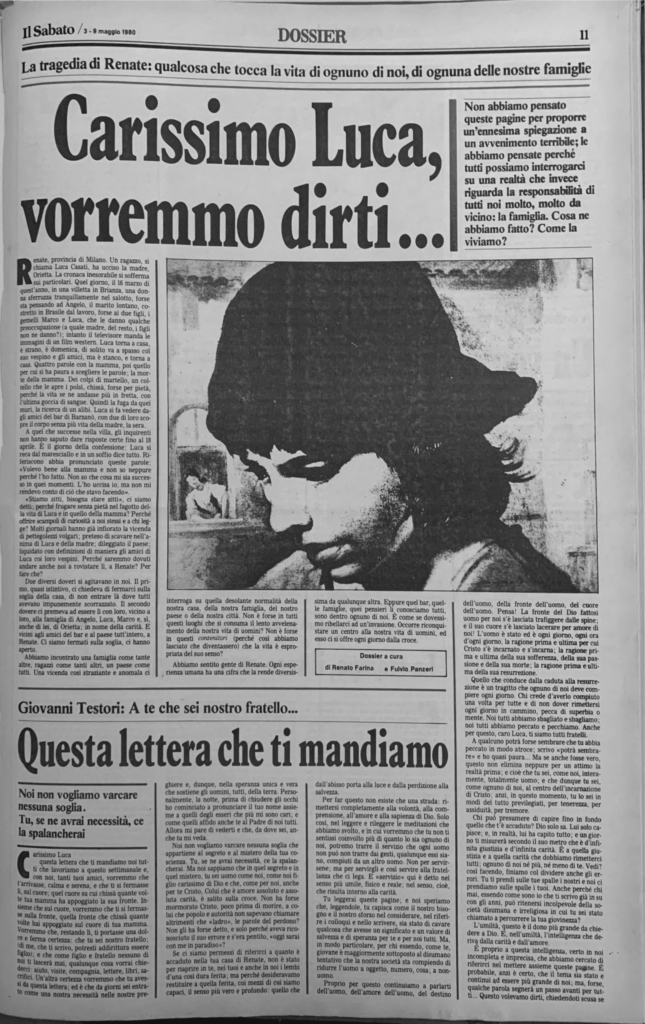 Carissimo Luca, questa lettera che ti mandiamo noi tutti che lavoriamo a questo settimanale e, con noi, tanti tuoi amici, vorremmo che t’arrivasse, calma e serena, e che ti si fermasse lì, sul cuore, quel cuore su cui chissà quante volte tua mamma ha appoggiato la sua fronte. Insieme che sul cuore, vorremmo che ti […]