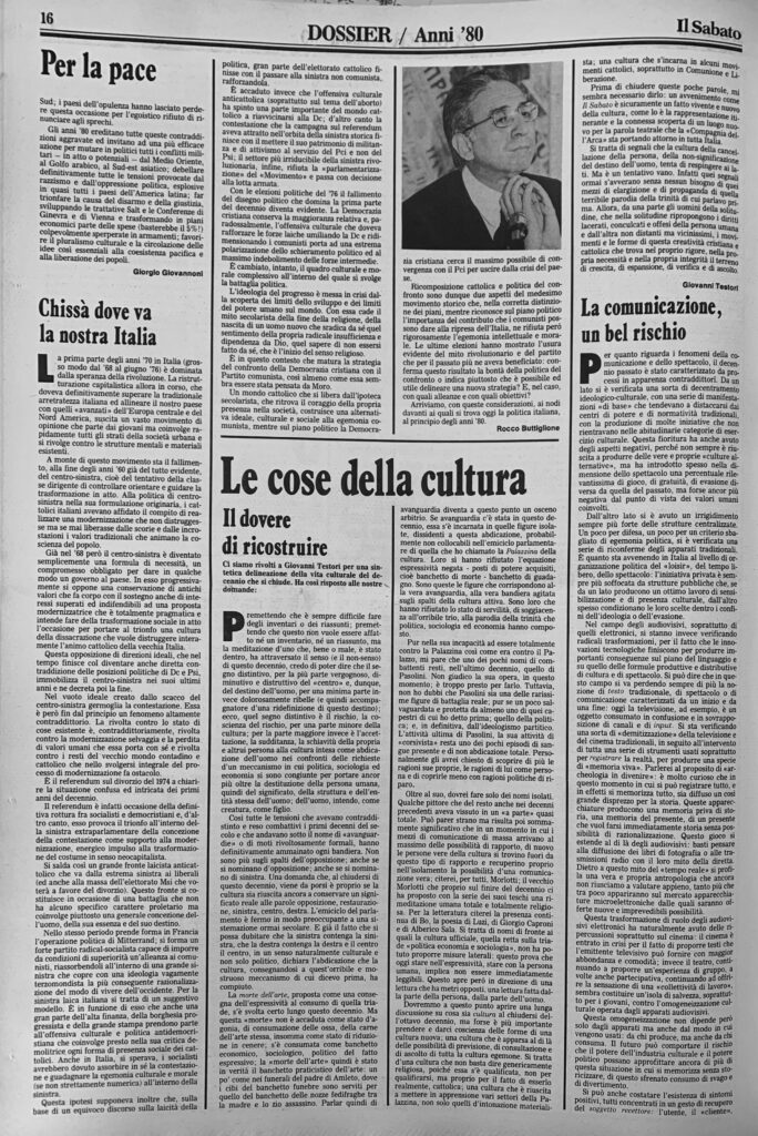 Ancora una bara che è scesa giù, nel lungo, troppo lungo cimitero della nostra sgargiante e idiota allegria consumistica; ancora un giovane che s’è tolta la vita; la vita donataci da Dio; la vita redenta dal sangue di Lui, il Cristo. Accanto al cadavere, ancora una lettera. Sappiamo che il suicidio è un gesto compiuto […]