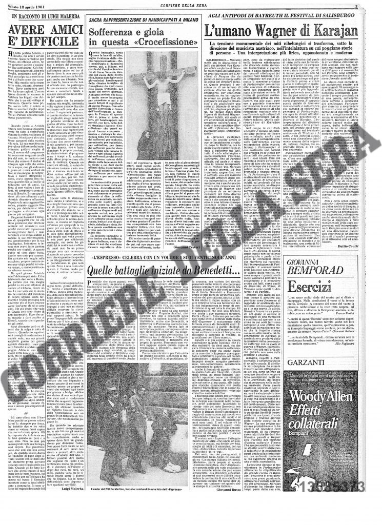 MILANO — Dal Pac ci giunse, l’altro giorno, un pacchetto o busta-pacchetto. Lo-la trovammo in portineria. Nel prenderlo(a?) tra le mani, ne scoprimmo l’inattesa levità . Pareva che contenesse baci o sementi. Conteneva invece un foglio di cartavelina violetta appallottolato; un po’ come quelli che avvolgevano una volta le arance, ma ben più grande; lì per […]
