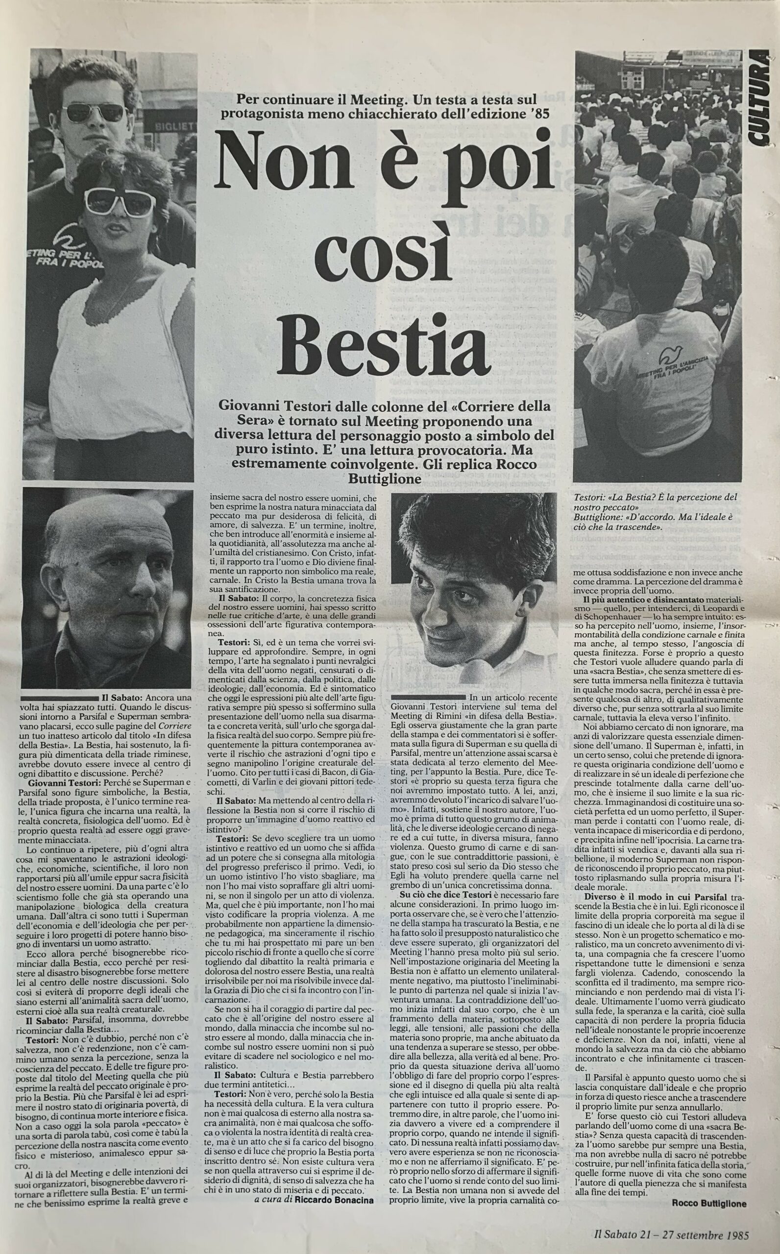 occhiello: Per continuare il Meeting. Un testa a testa sul protagonista meno chiacchierato dell'edizione '85