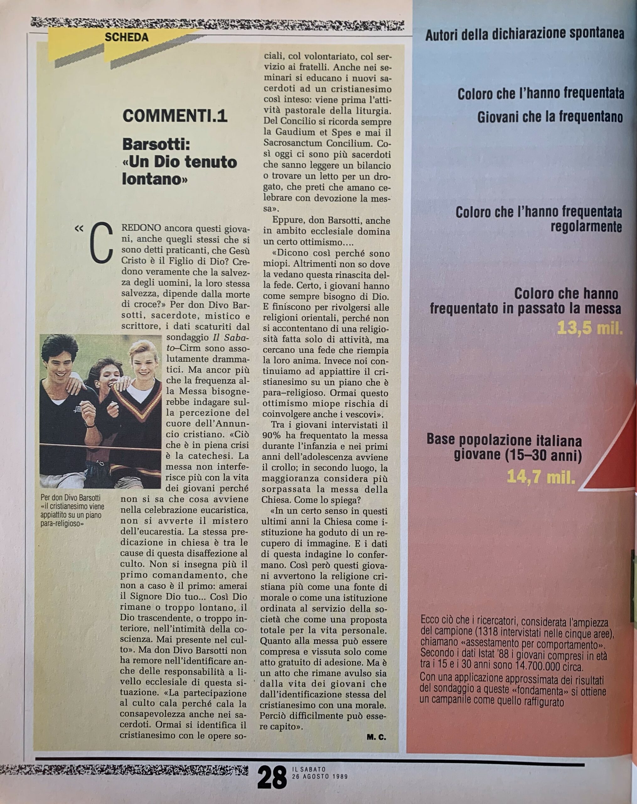 Il pezzo di Testori è un scheda del servizio: Sondaggio: La Messa finisce da piccoli di Maurizio Caverzan, pp. 22-29