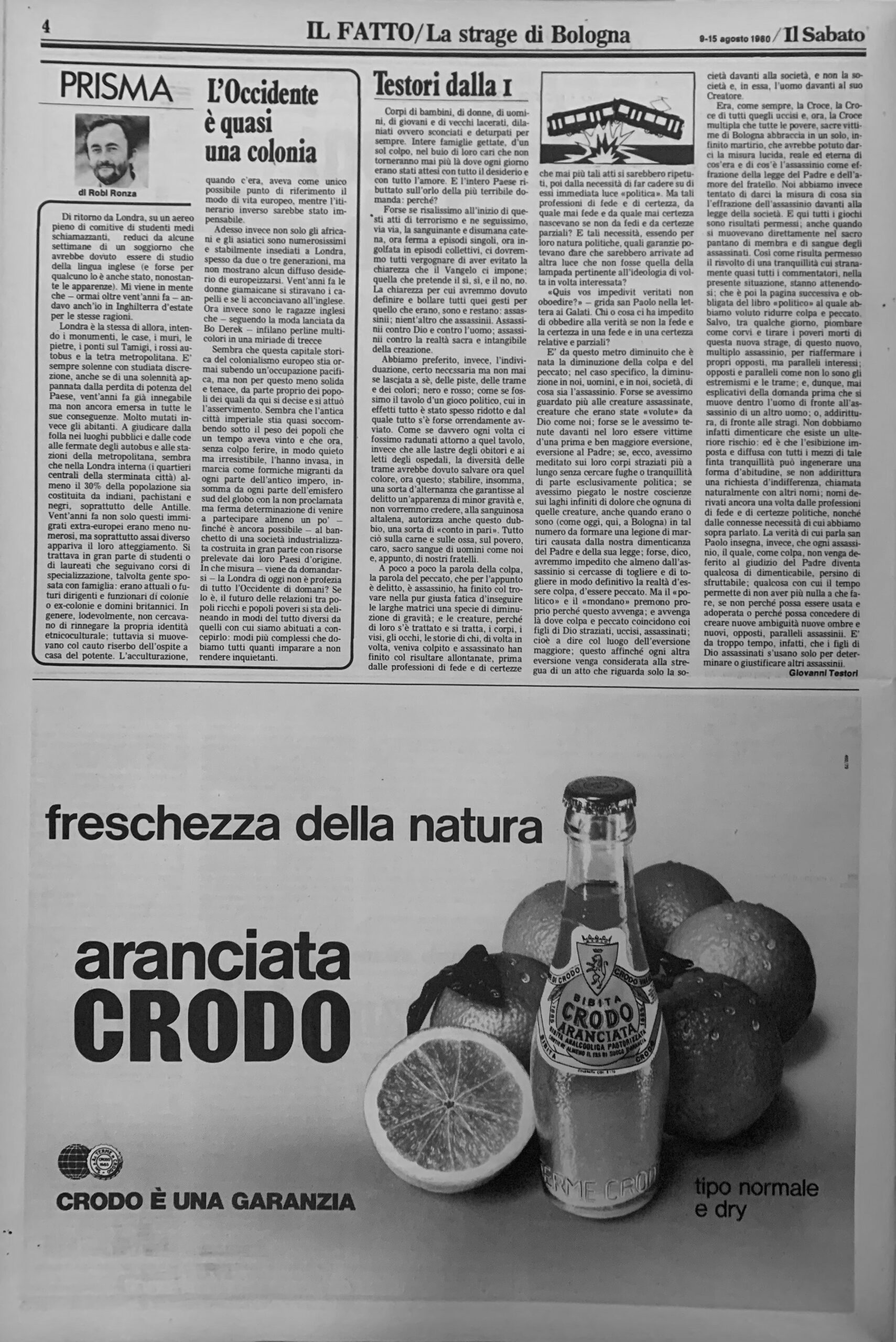 Intervento sulla strage alla stazione di Bologna (2 agosto 1980) (1980.P68; 1981.P62). Incluso in La Maestà della vita (1982.V6).