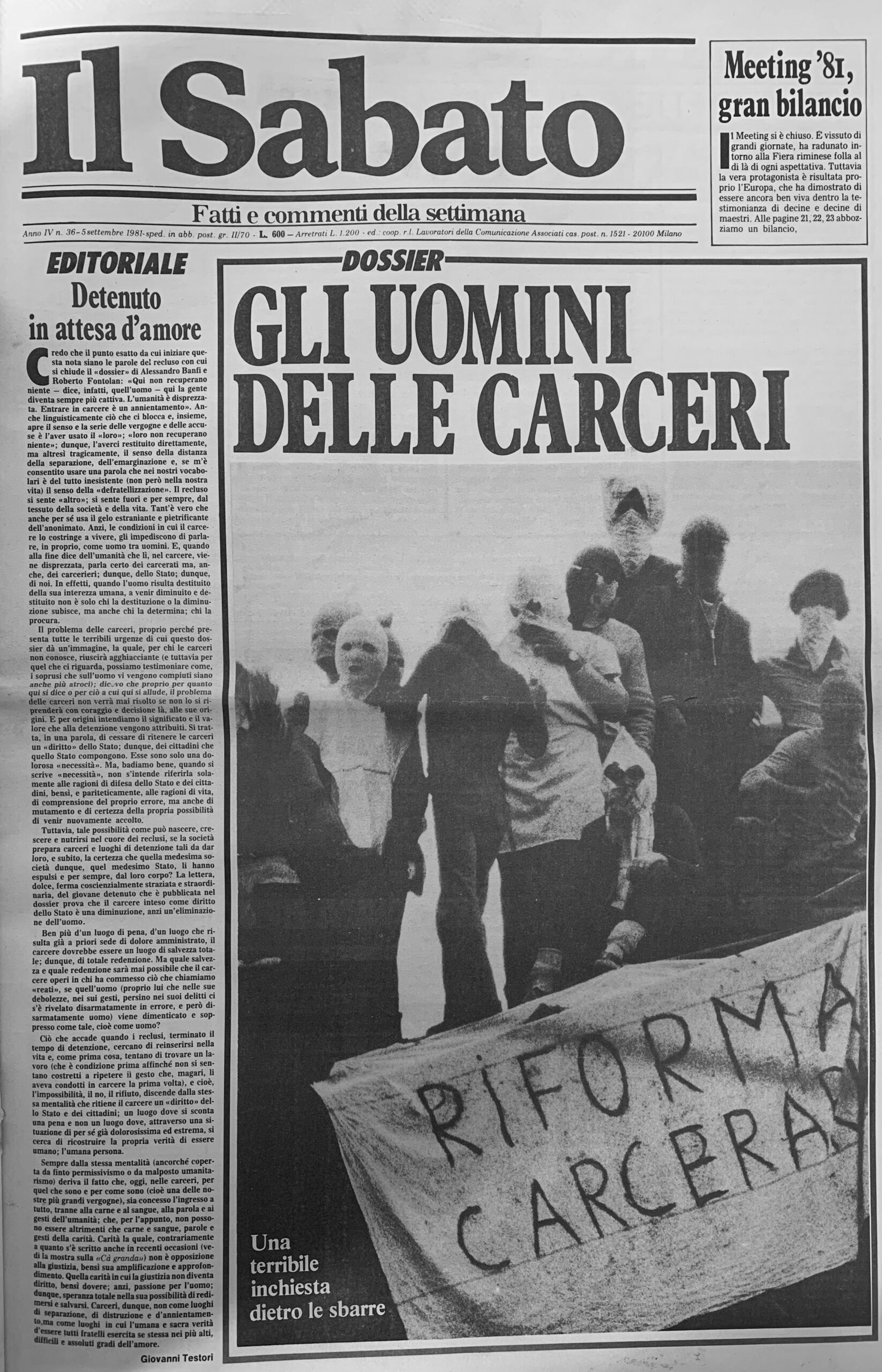 Commento in apertura di un dossier, a cura di Alessandro Banfi, dedicato alla situazione nelle carceri italiane. Incluso in La Maestà della vita (1982.V6).
