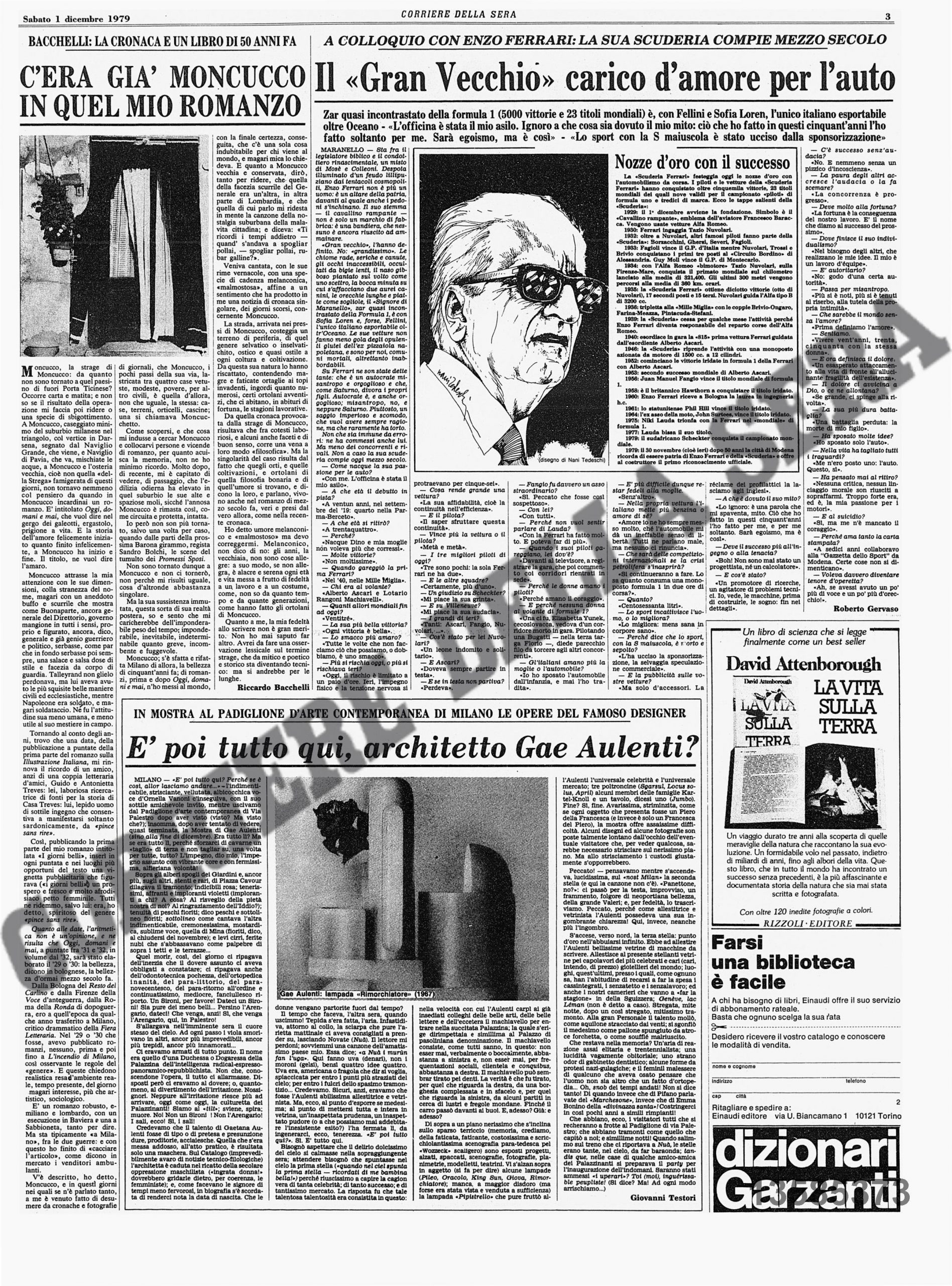Recensione della mostra Gae Aulenti (Milano, Padiglione d'Arte Contemporanea, novembre-dicembre 1979). A Testori replicò Enrico Filippini (Nella testa di Testori, «la Repubblica», 6 dicembre 1979, p. 14).