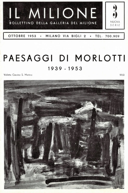 Il bollettino è intitolato Paesaggi di Morlotti. 1939-1953, a differenza del titolo del saggio che reca la data errata 1936; pubblicato in occasione della personale del pittore, aperta fino al 14 novembre 1953 alla Galleria del Milione. Lo scritto di Testori apre il bollettino.