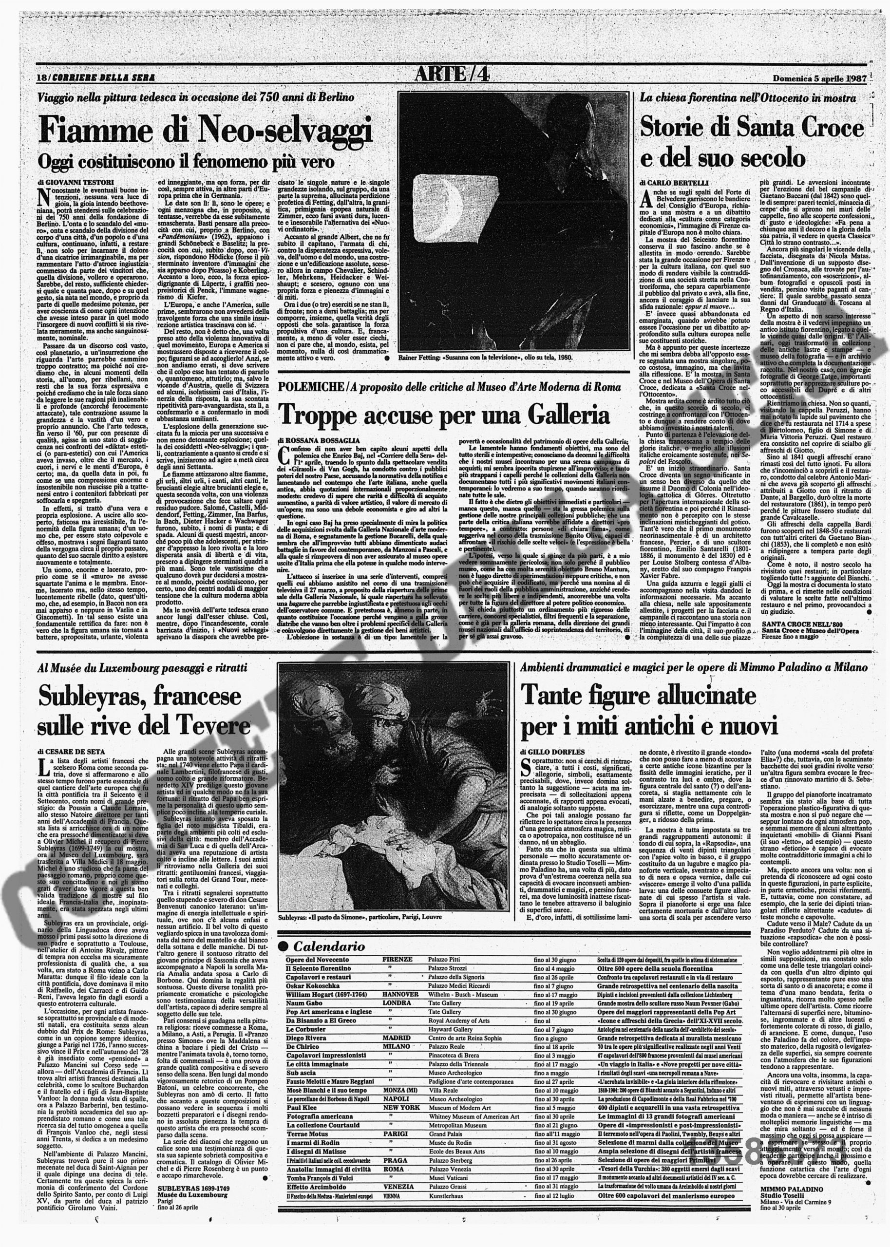 Considerazioni sulla pittura tedesca contemporanea, nella quale Testori individua due gruppi omogenei di artisti: i Nuovi Selvaggi e i Nuovi Ordinatori.