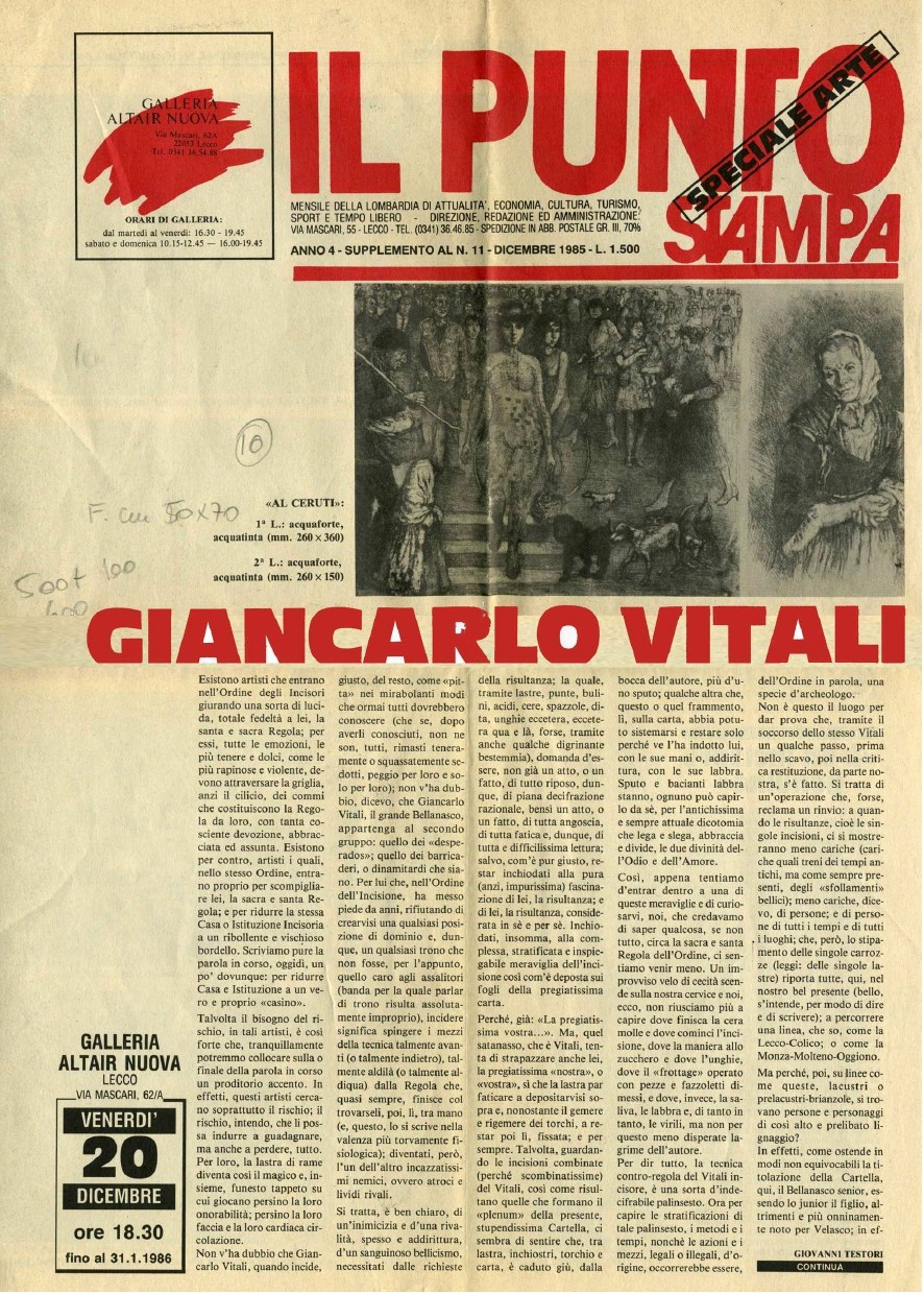 Anteprima del testo scritto per una personale dell'artista (1985.V19), pubblicato in un supplemento della rivista interamente dedicato all'esposizione.
