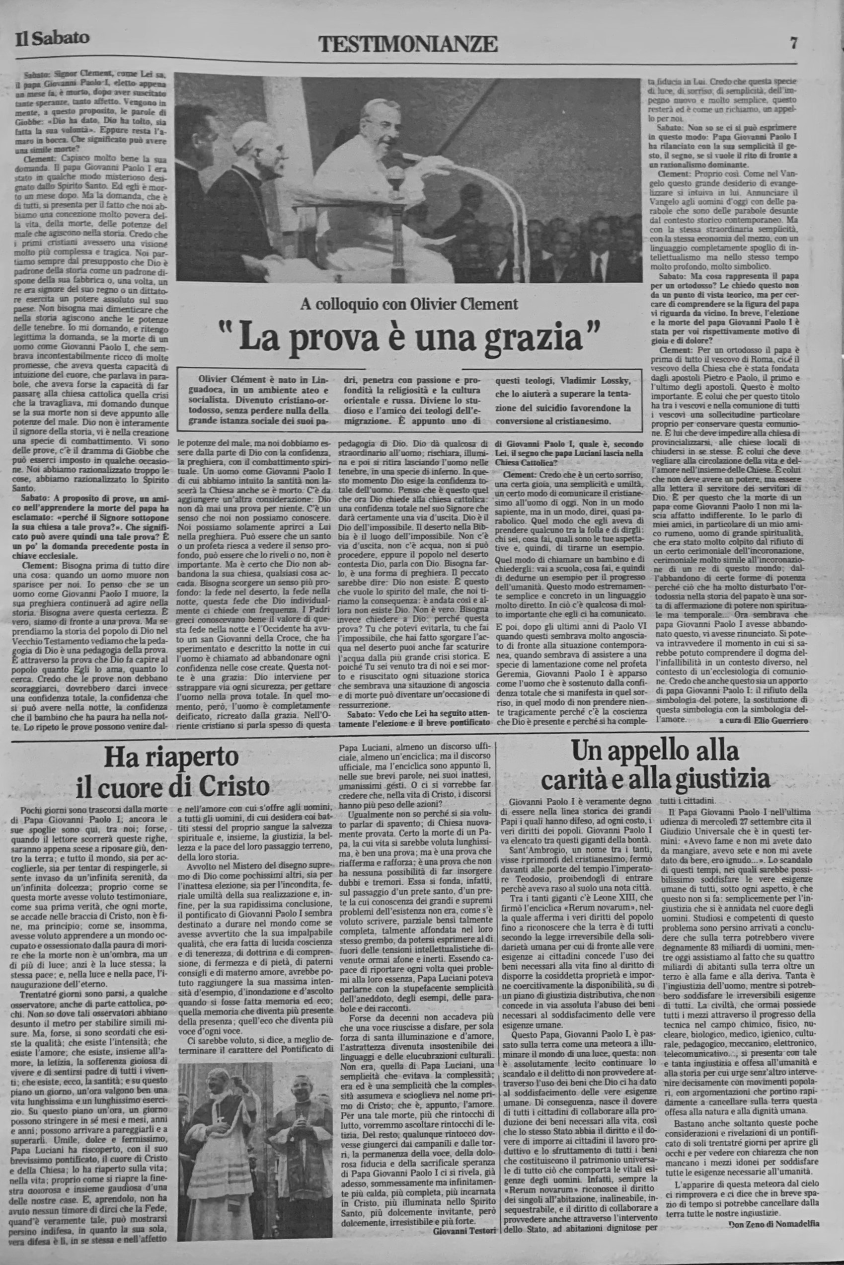 Intervento su papa Giovanni Paolo I.