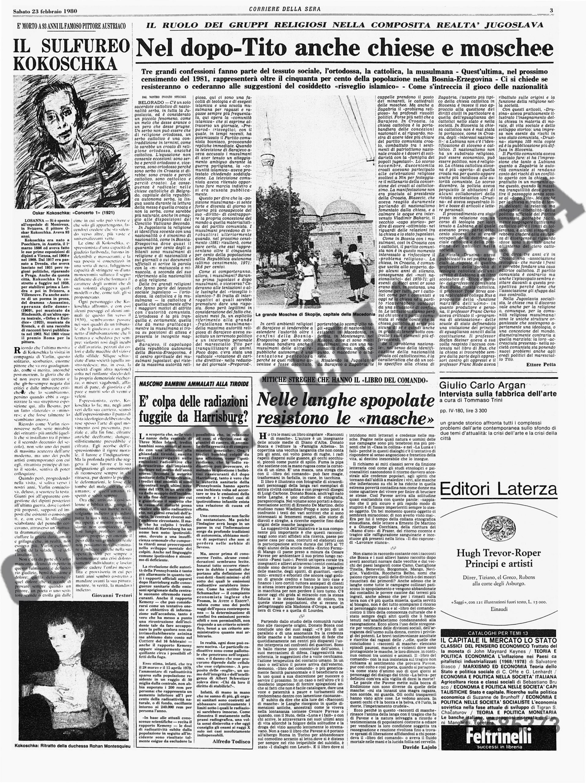 Occhiello:È morto a 93 anni il famoso pittore austriaco