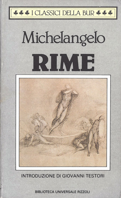 Copertina di John Alcorn; al centro un dettaglio di un disegno di Michelangelo, Studio per la Risurrezione di Cristo (Londra, British Museum). In esergo una citazione dello stesso Michelangelo: "Un uomo in una donna, anzi uno dio" [Rime, 235].