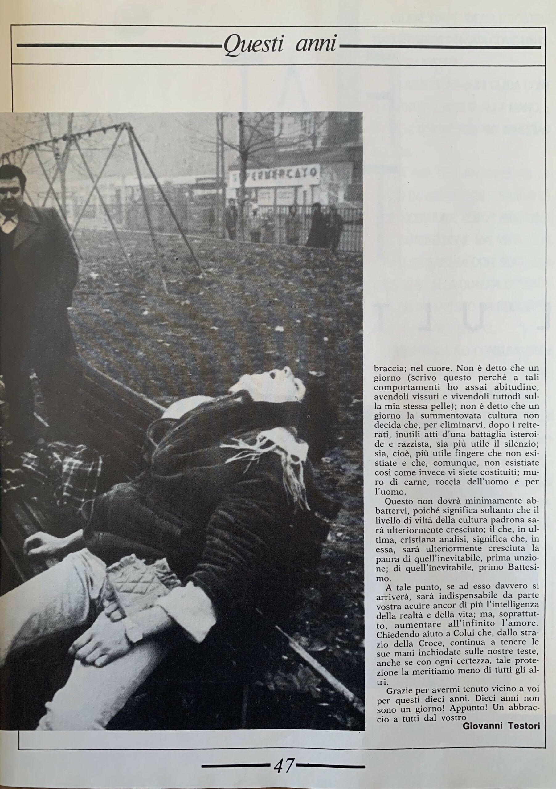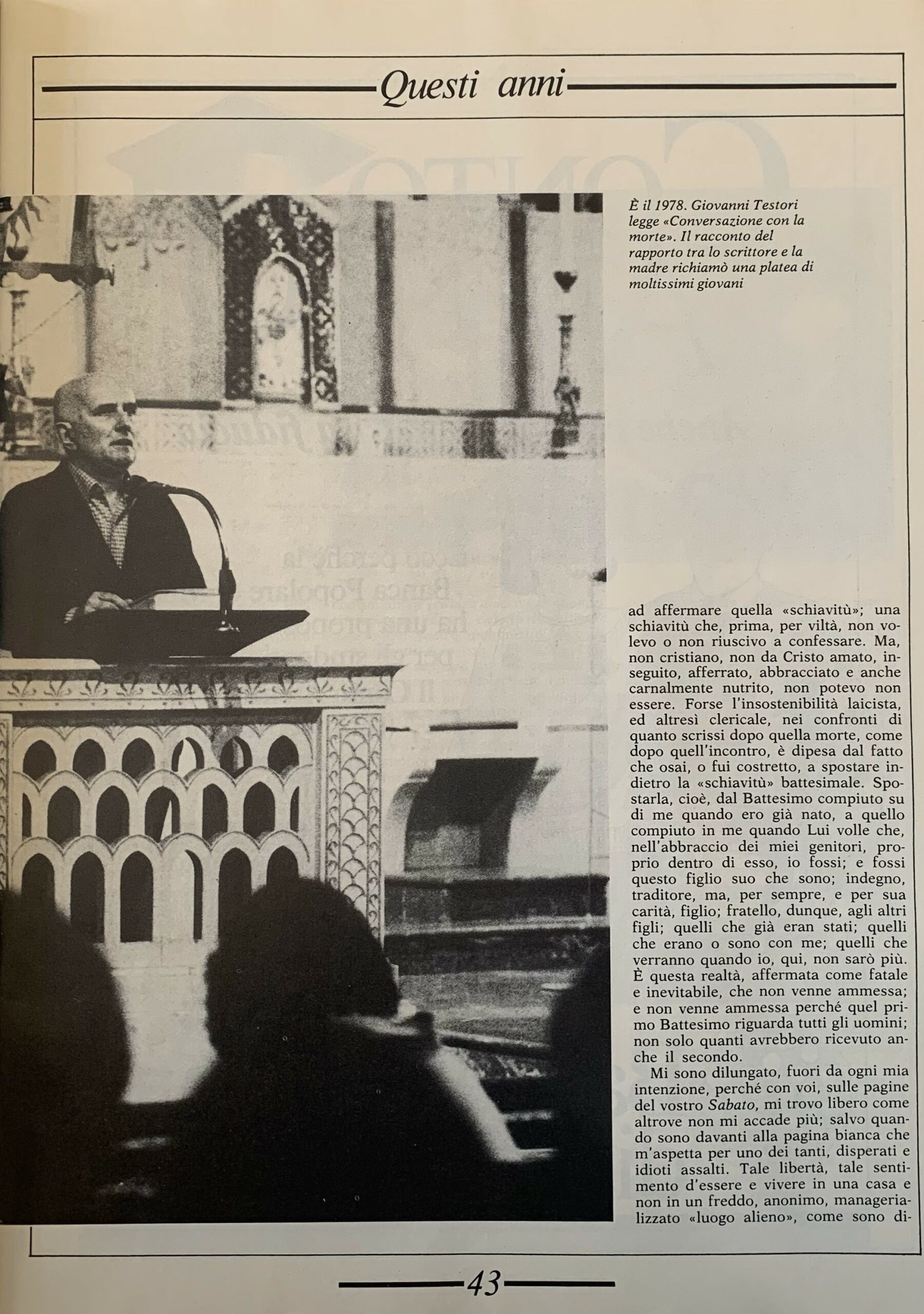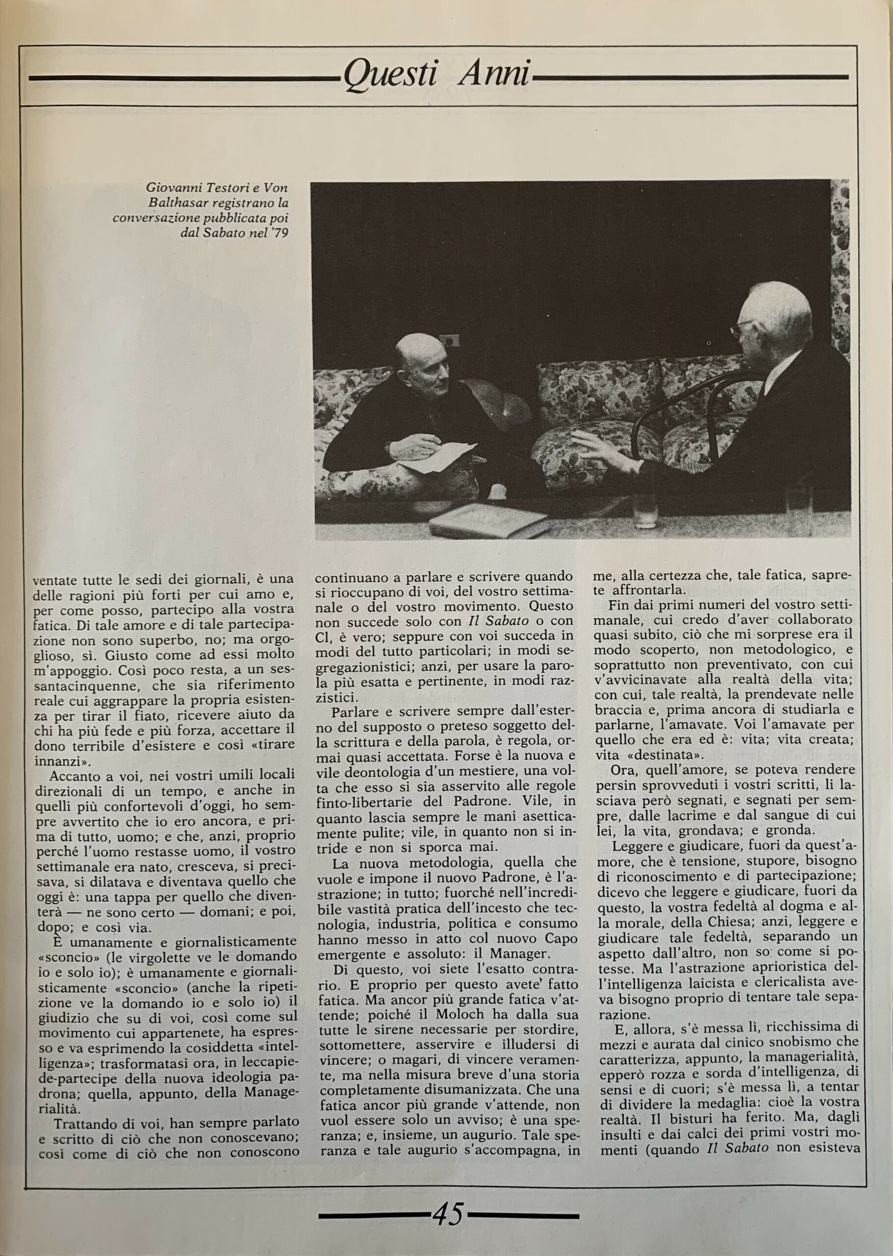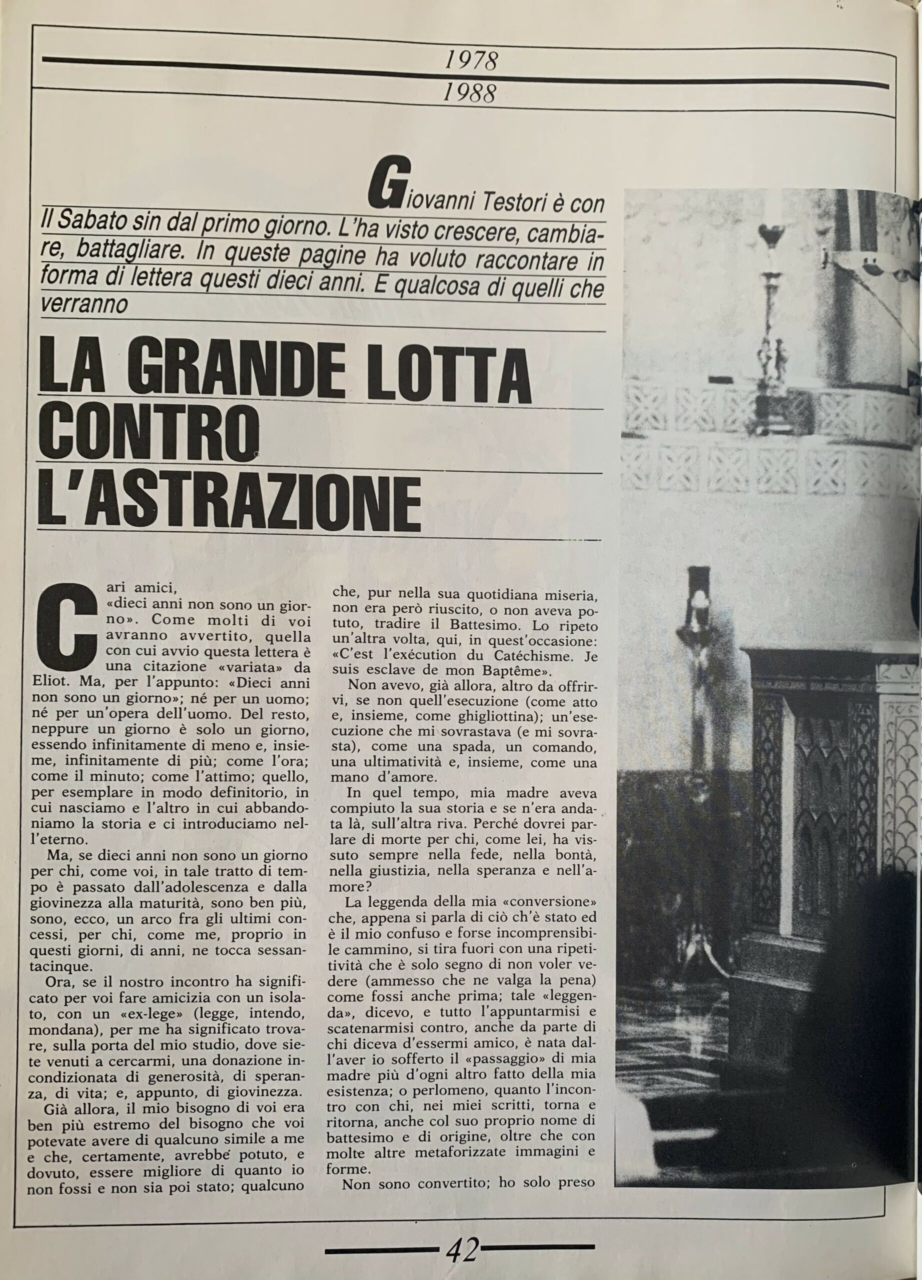 Lettera aperta a «Il Sabato», sulla propria esperienza di collaboratore del settimanale, iniziata con il primo numero della rivista, il 27 maggio 1978 (1978.P35).