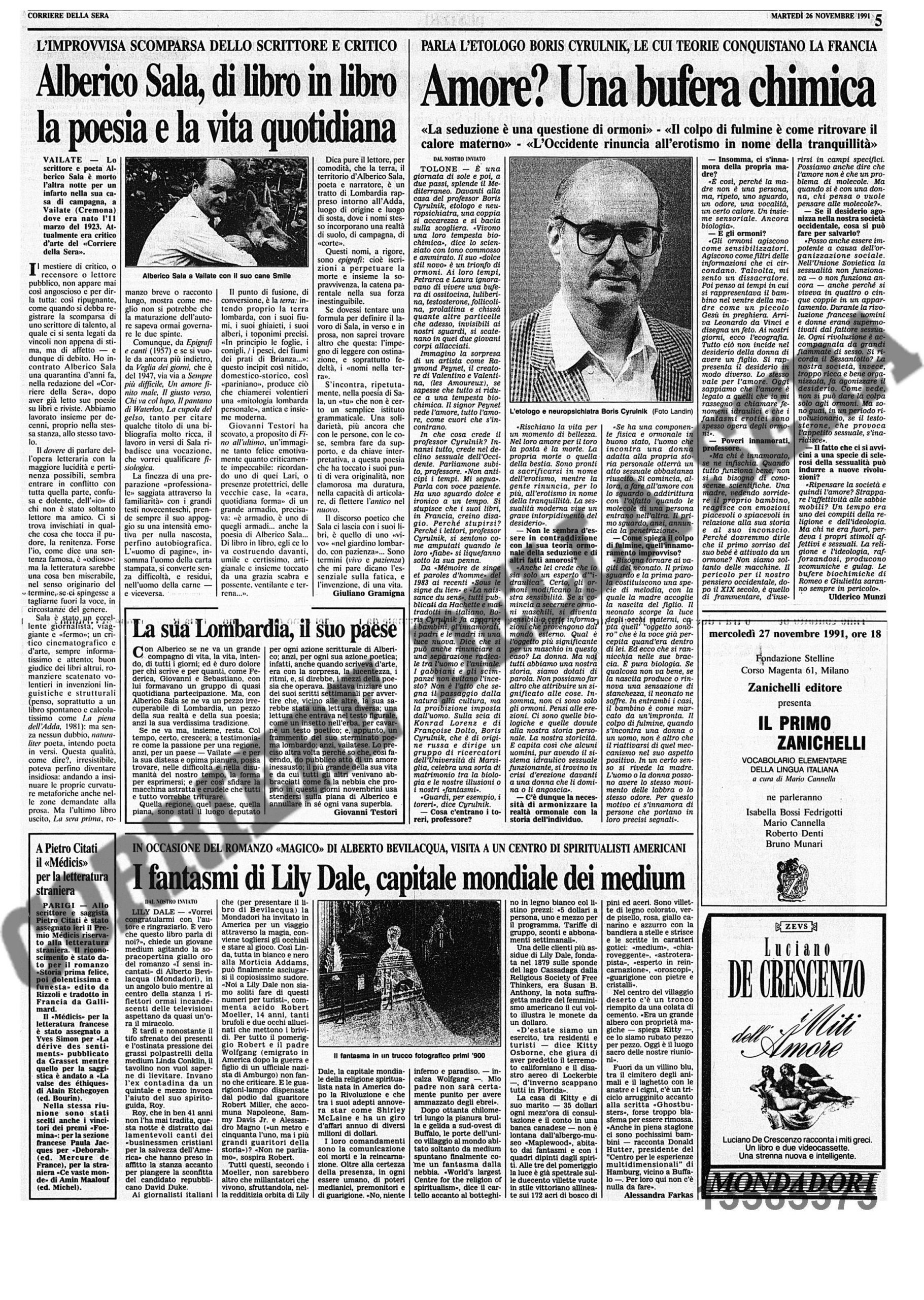 Breve intervento all'interno dell'articolo di Giuliano Gramigna Alberico Sala, di libro in libro la poesia e la vita quotidiana, pubblicato in occasione della morte del poeta Alberico Sala (1923-1991).
