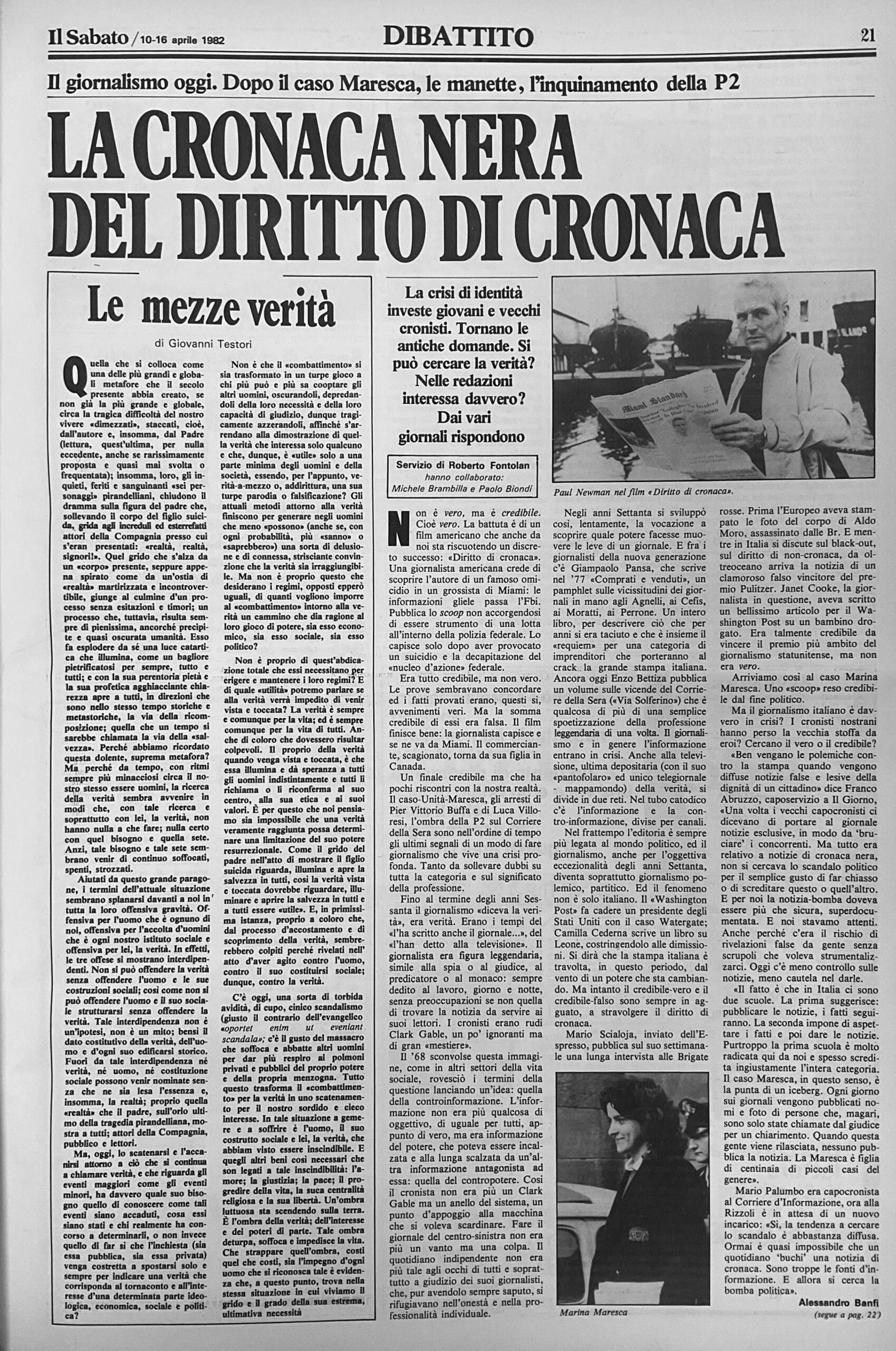 Intervento sul concetto di verità e sui doveri che dovrebbero assumersi i giornalisti.
