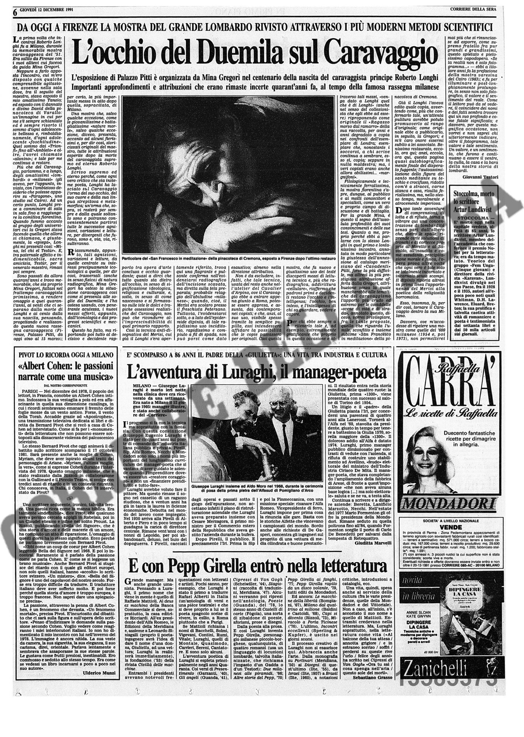 Recensione della mostra Michelangelo Merisi da Caravaggio. Come nascono i capolavori (Firenze, Palazzo Pitti, 12 dicembre 1991 - 15 marzo 1992).