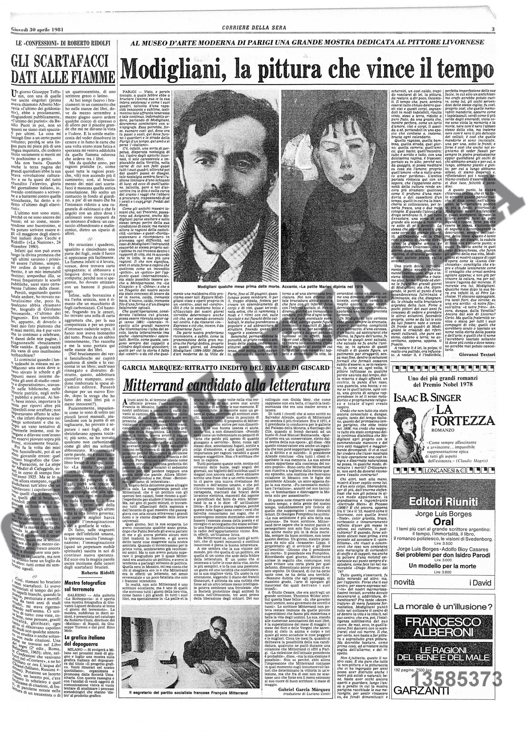 Recensione della mostra Amedeo Modigliani. 1884-1920 (Parigi, Musée d'Art Moderne de la Ville, 26 marzo - 28 giugno 1981).