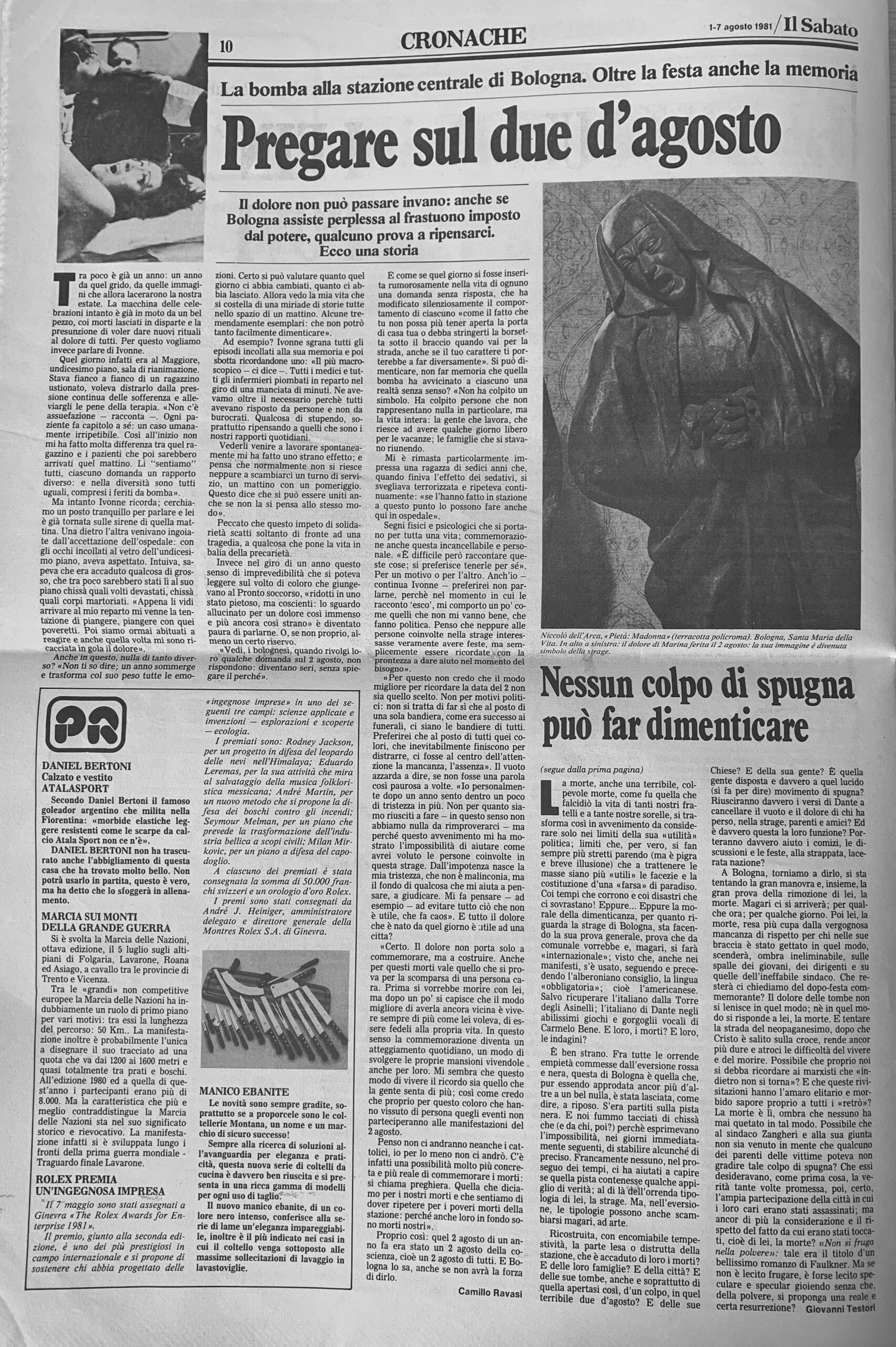 Intervento a un anno dalla strage alla stazione di Bologna (