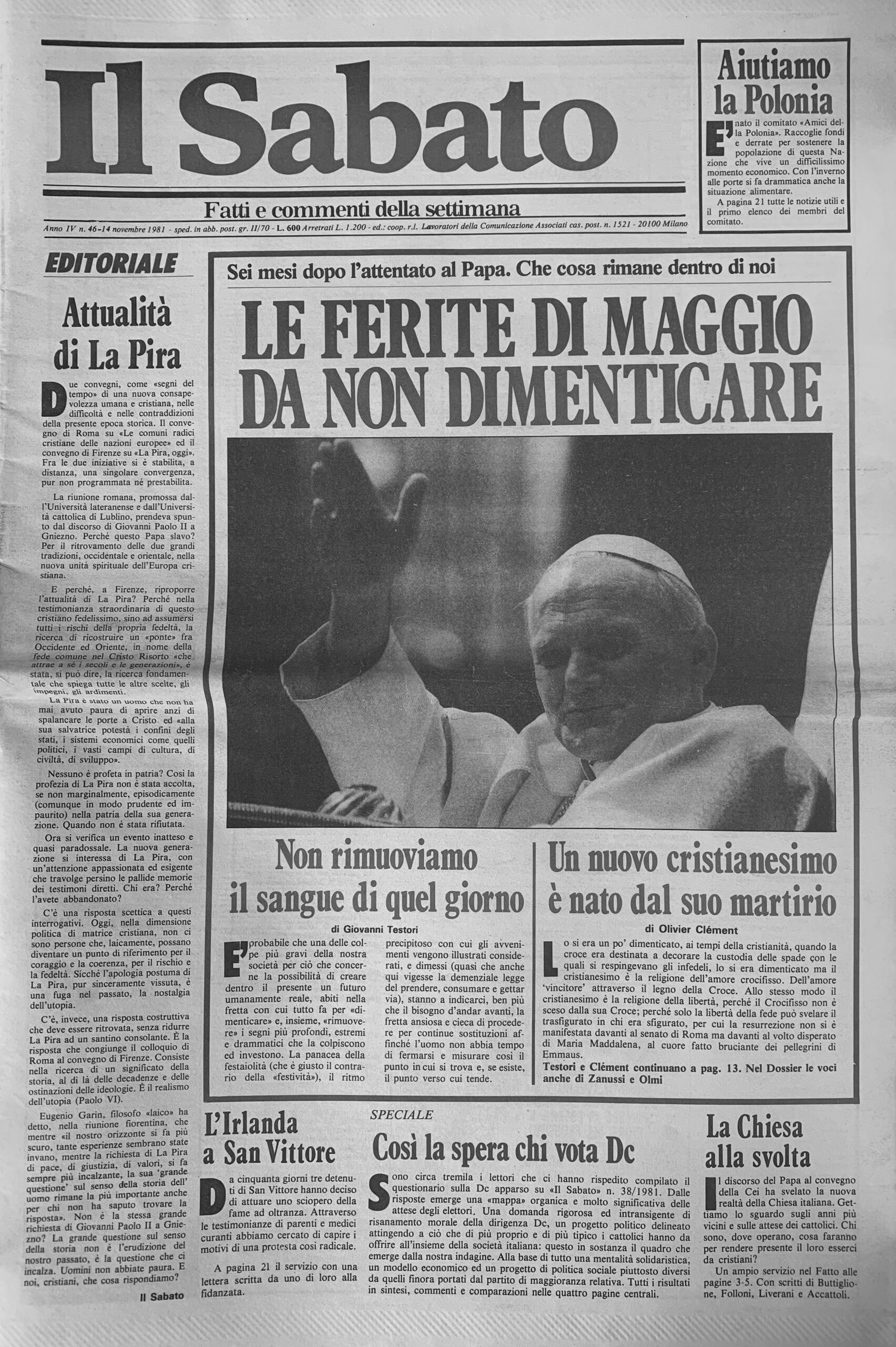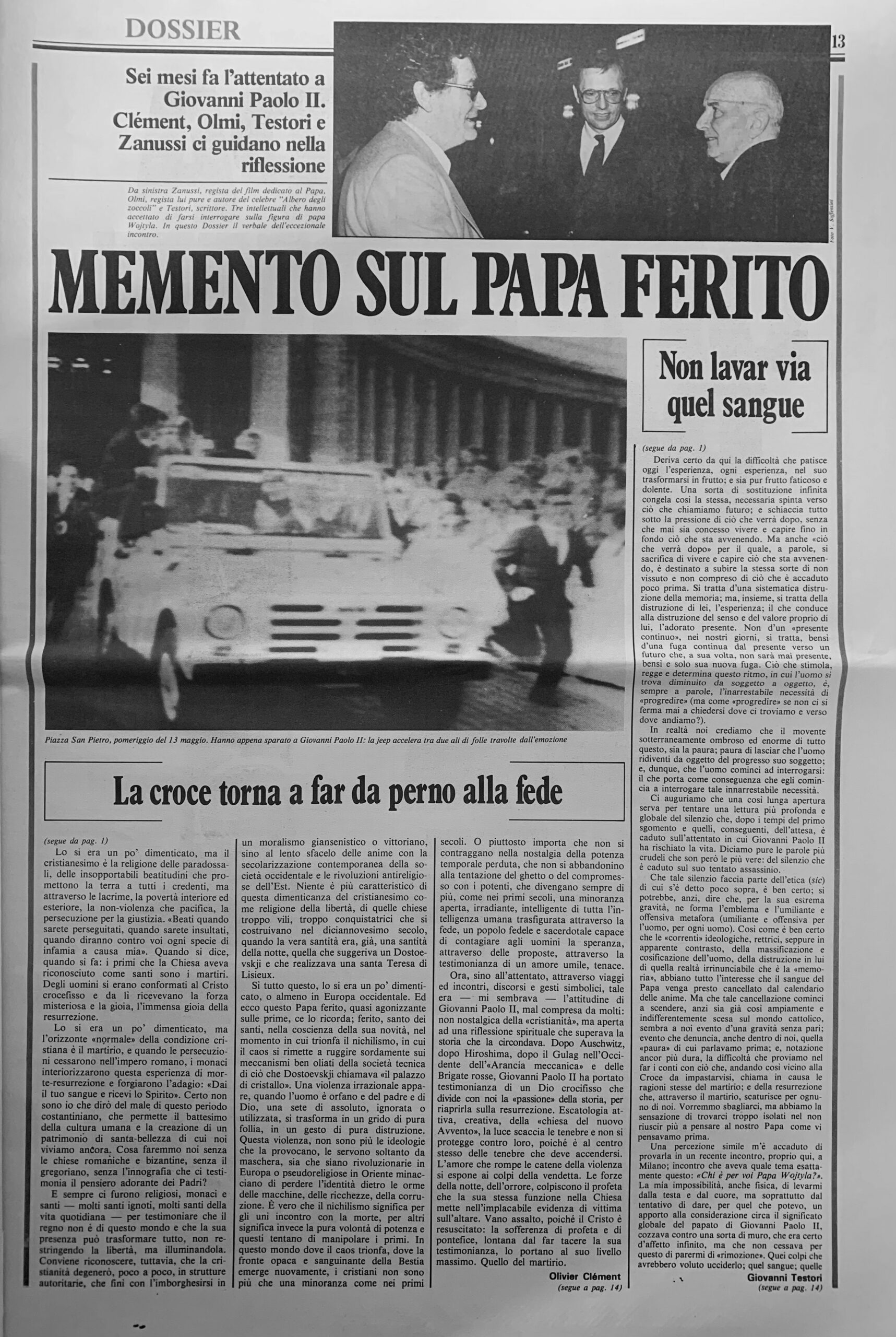 Riflessione a sei mesi dall'attentato (1981.P40). Incluso in La Maestà della vita (1982.V6).