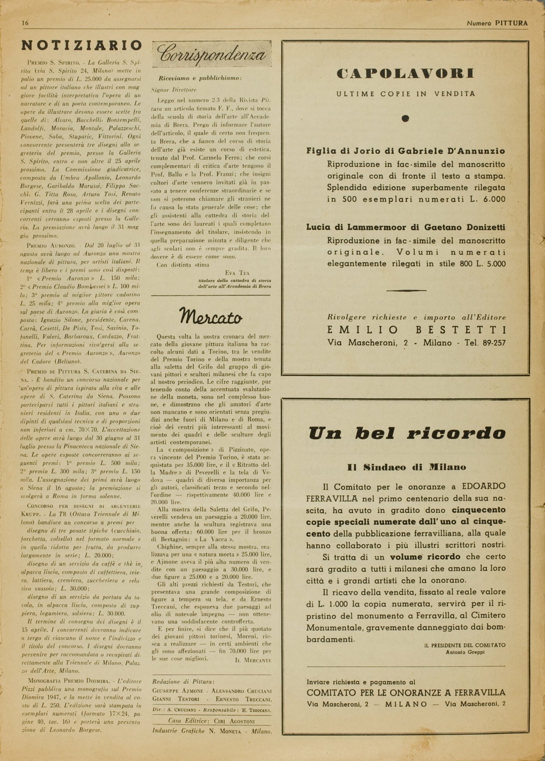 La studiosa Benedetta Brison attribuisce a Testori anche gli interventi anonimi ma siglati da tre asterischi (***) (2013.FC3).