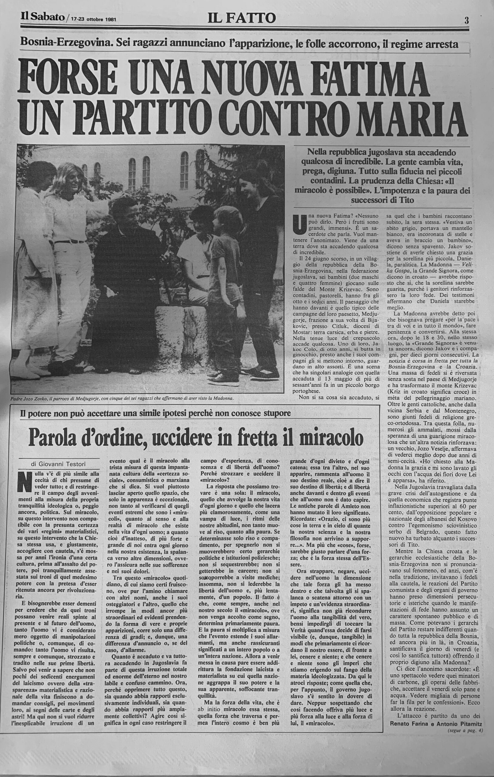 In merito alle apparizioni della Madonna a Medjugorje. Incluso in La Maestà della vita (1982.V6).