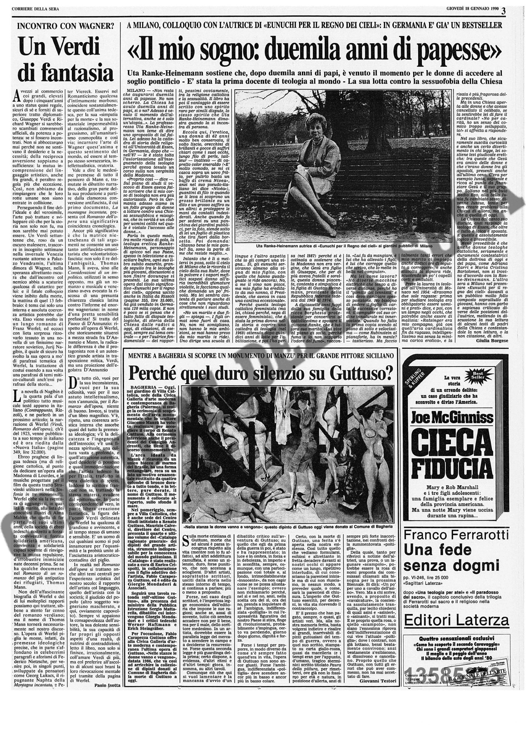 Polemica contro la censura della "morte cristiana" di Guttuso, in occasione della cerimonia di scoprimento della tomba di Renato Guttuso realizzata da Giacomo Manzù (Bagheria, Giardino di Villa Cattolica - Galleria d'arte moderna e contemporanea) e della presentazione del quarto e ultimo volume del catalogo ragionato dell'artista (Catalogo ragionato generale dei dipinti di Renato Guttuso, a cura di E. Crispolti, Milano, Arnoldo Mondadori, 1983-1989).