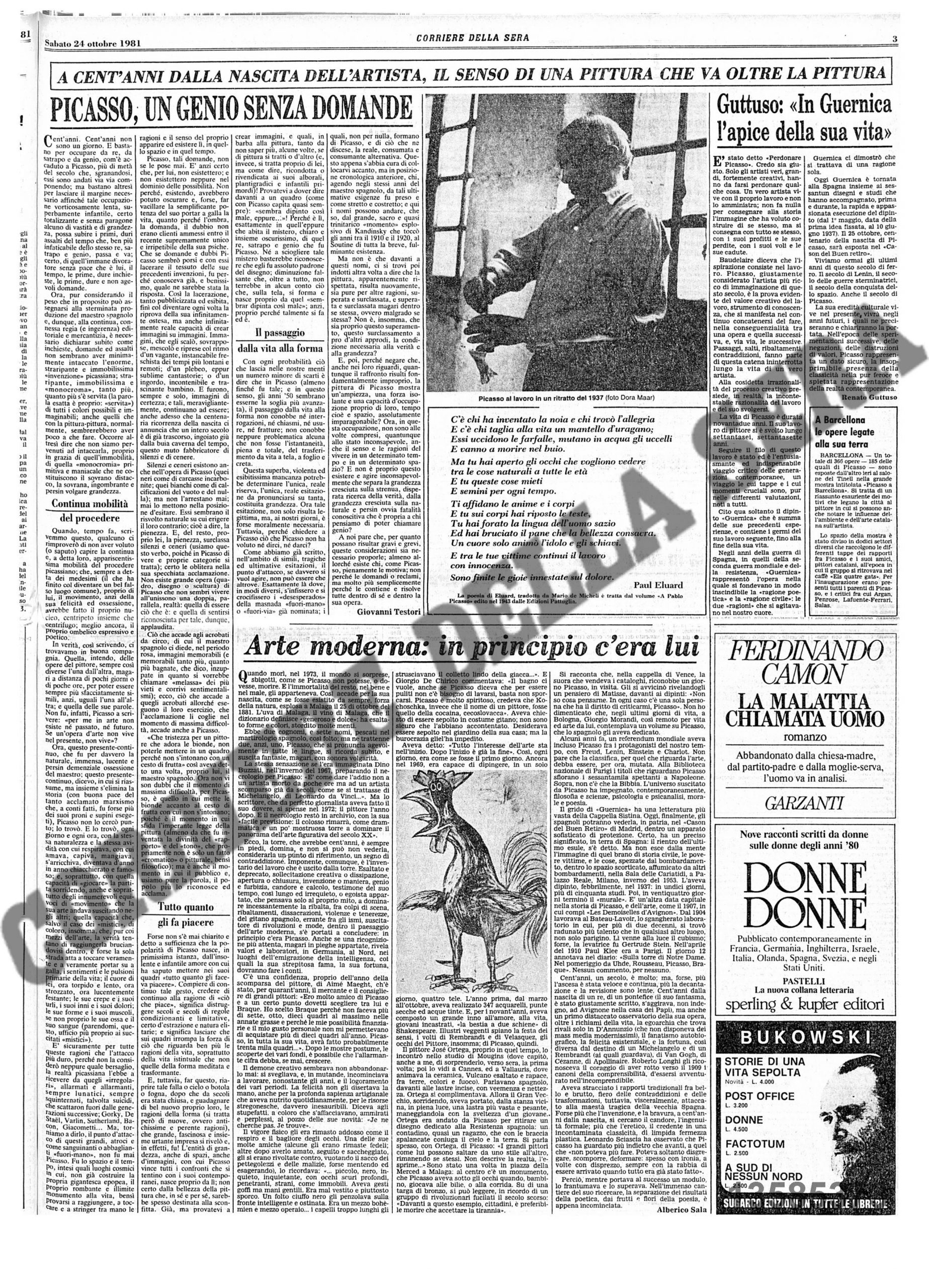 Il titolo della pagina, A cent'anni dalla nascita dell'artista, il senso di una pittura che va oltre la pittura, interamente dedicata all'artista (1881-1973), comprende anche articoli di Renato Guttuso e Alberico Sala e la trascrizione di una poesia di Paul Éluard, dalla raccolta A Pablo Picasso, curata da Mario De Micheli per le Edizioni di Pattuglia, nel 1943.