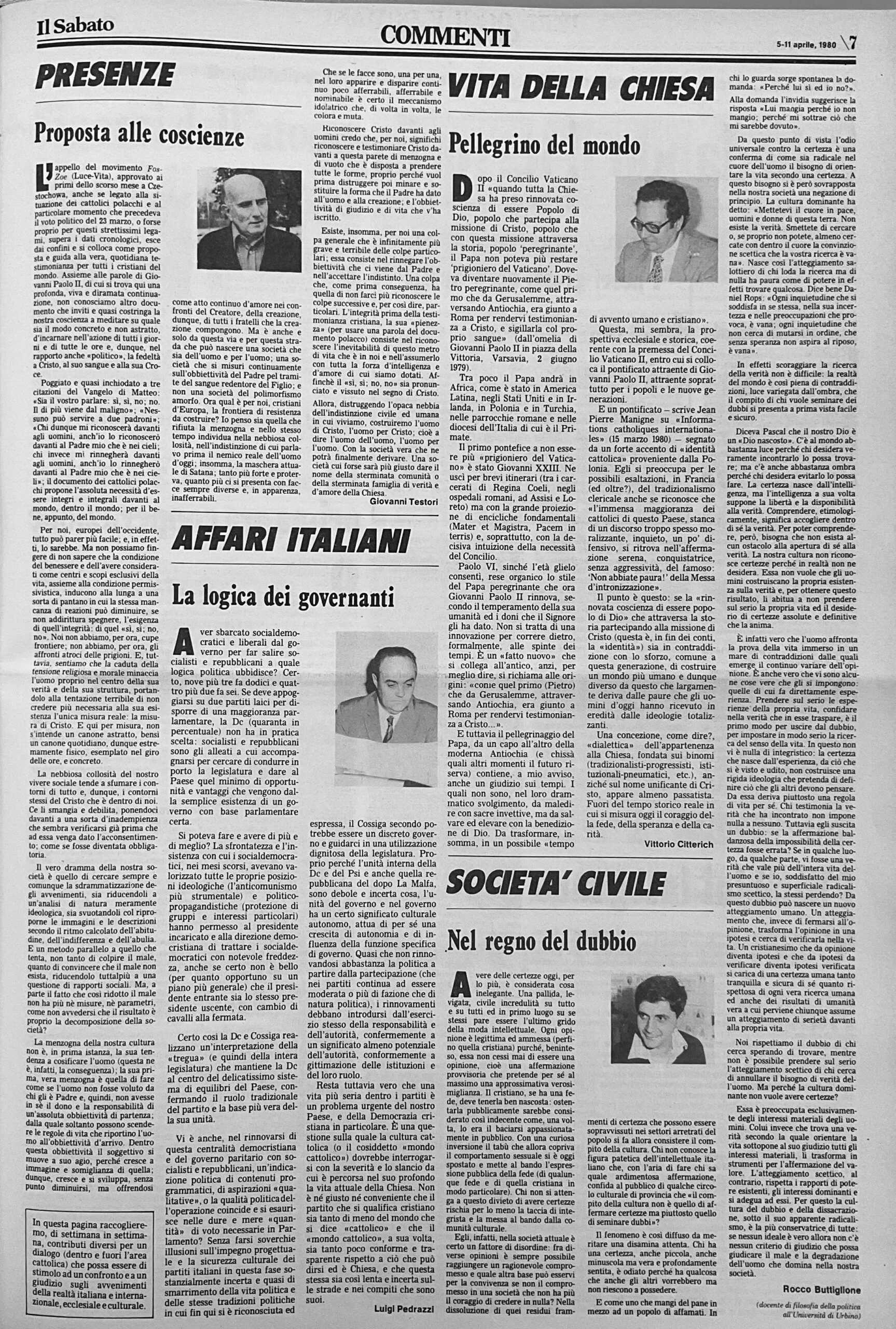 Intervento sull'appello del movimento cattolico polacco Fos-Zoe (Luce-Vita). Incluso in La Maestà della vita (1982.V6).