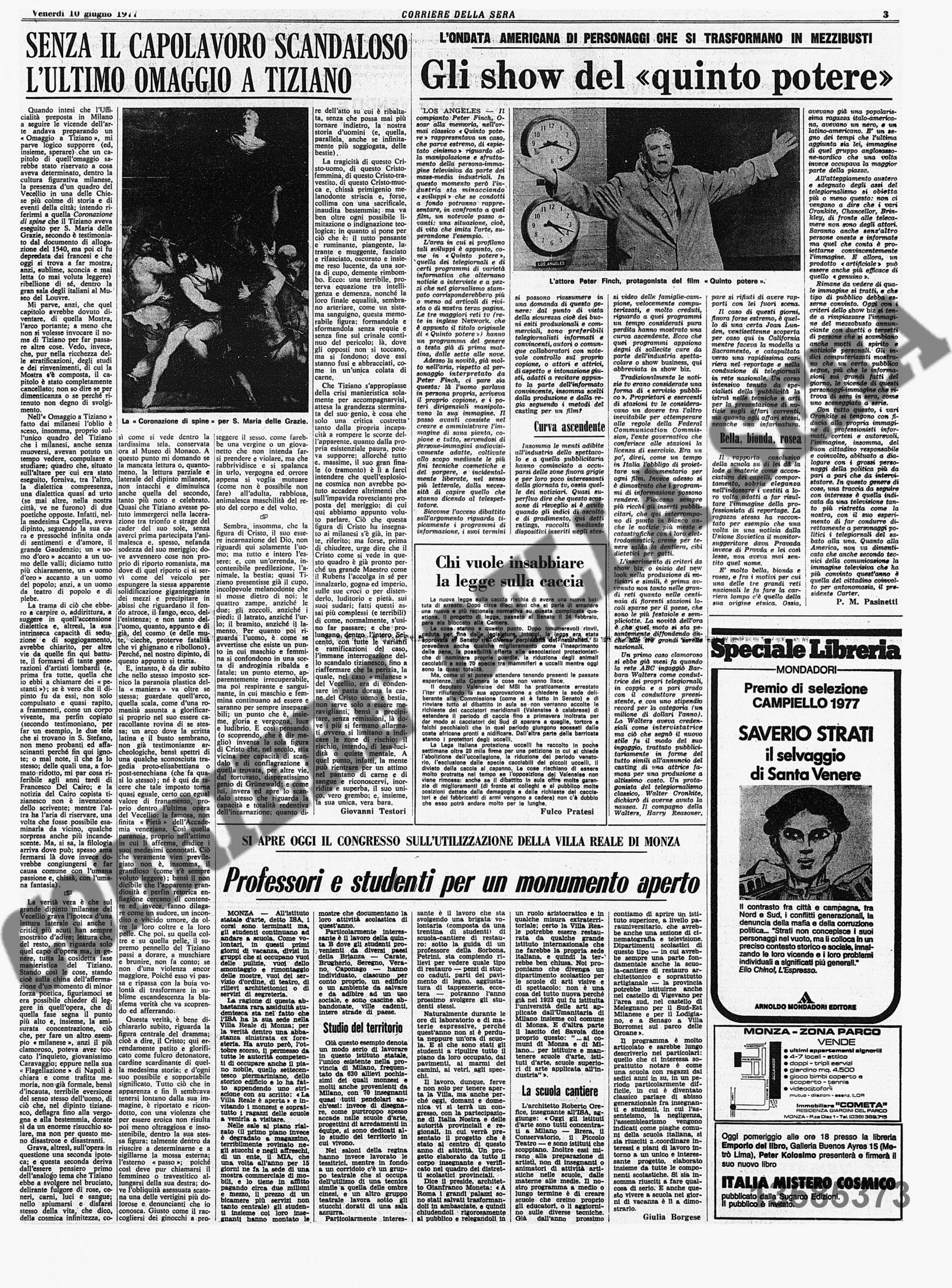 Testori lamenta l'assenza della Coronazione di spine di Tiziano (conservata al Louvre, ma dipinta per Santa Maria delle Grazie a Milano) nella mostra Omaggio a Tiziano. La cultura artistica milanese nell'età di Carlo V (Milano, Palazzo Reale, 27 aprile - 20 luglio 1977).