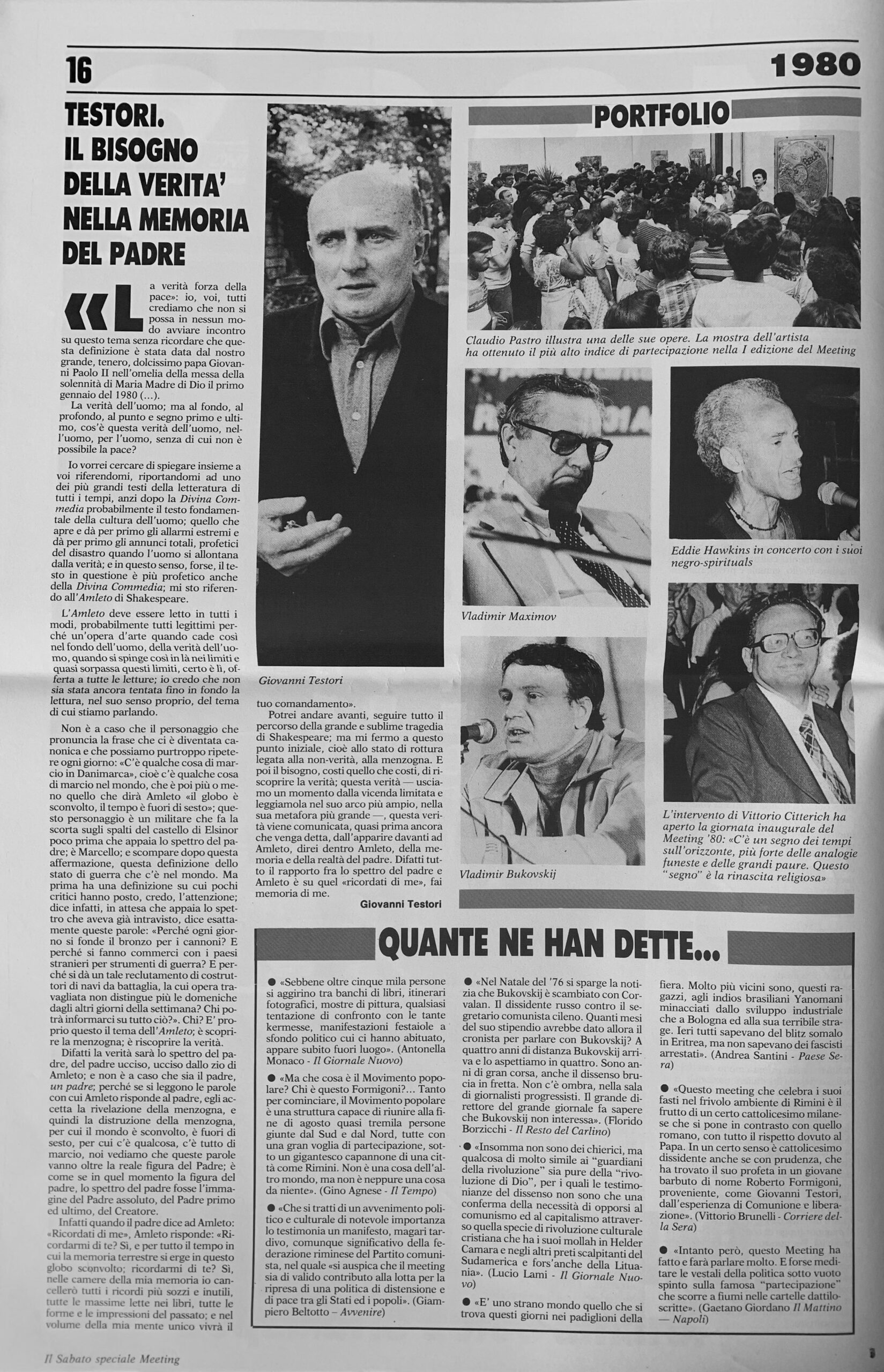 Brano da un intervento di Testori tenuto al I Meeting per l'amicizia fra i popoli di Rimini (1980.P72). Pubblicato nel supplemento "Sette volte Meeting".