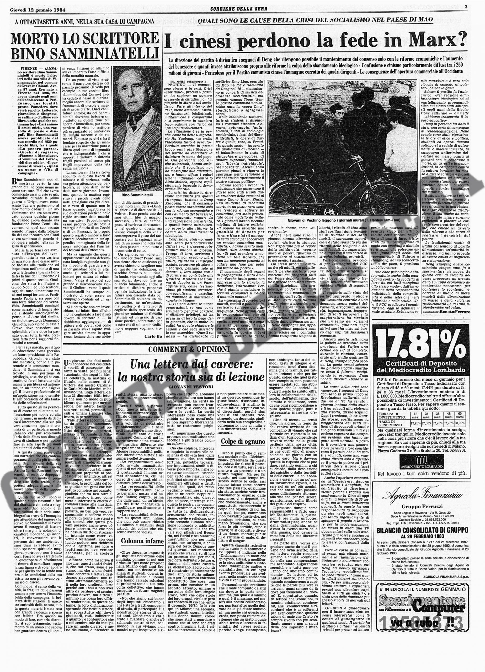 Commento a una lettera inviata a Testori da un giovane, conosciuto il giorno di Natale nel carcere di San Vittore, colpevole di reati legati agli anni di piombo.